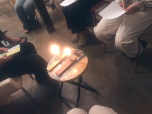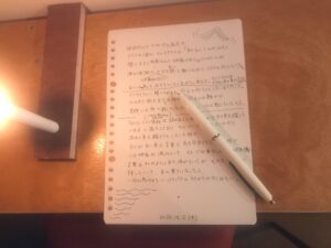 たくさんの本に囲まれて、外は雨がしとしと、ろうそくの炎がゆれる中、昨日のことを思い出してルーズリーフに手書きで書いてみました。